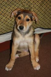 Девочке 1,5-2 месяца. Сейчас в холке 26 см. Вырастет средней. Уже очень воспитанная и обучаемая, бежит через весь дом, что бы успеть пописать на пеленочку. Дружит с котами, собаками и попугаями. Пока не привита, проглистогонена. Достаточно спокойная, добрая и очень нежная.