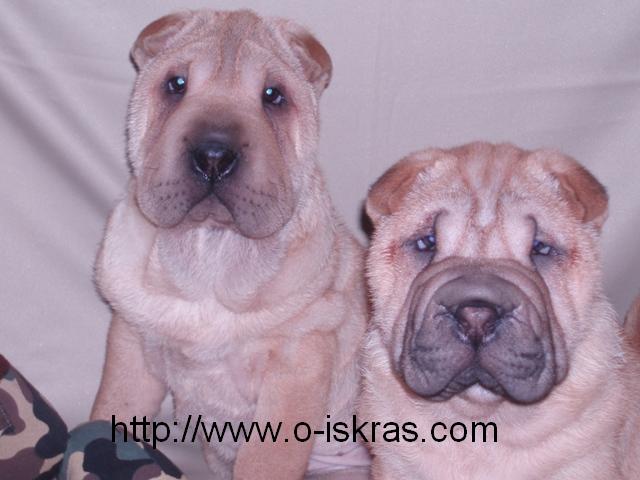 окрасШАРПЕЙов и бульдогов рыже-белого, белого, бело-рыжего окрасов предлагает питомник O.Iskras. В родословной - Мира, Призер Европы, Чемпионы Украины, Чемпионы России,