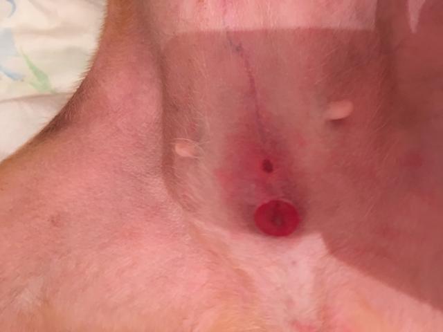 Как я поняла это зона пупка? Очень похоже на расчёс. У моего пса было что-то похожее, когда у него были блохи и он сильно расчесал это место. Проверьте собаку на наличие блох.