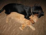 Теперь один из наших щенков, живет с таксой, вся квартира на ушах стоит. Когда идут вместе на прогулку, живут возле леса, хозяйка каждый раз говорит "Хоть бы никакой труп не отрыли".