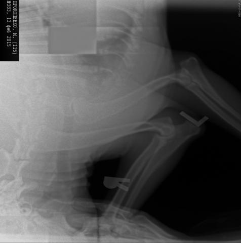 Здравствуйте! У меня амстафф девочка 11 месяцев. Я замечаю, что иногда во время прыжков или активных игр у нее возникают резкие болевые ощущения, не могу разобраться, где.Обратились в вет клинику, сделали рентген и нам поставили диагноз "Дисплазия локтевого сустава" правой передней лапы. Прилагаю снимок и очень прошу проконсультировать меня по этому поводу.Заранее спасибо!