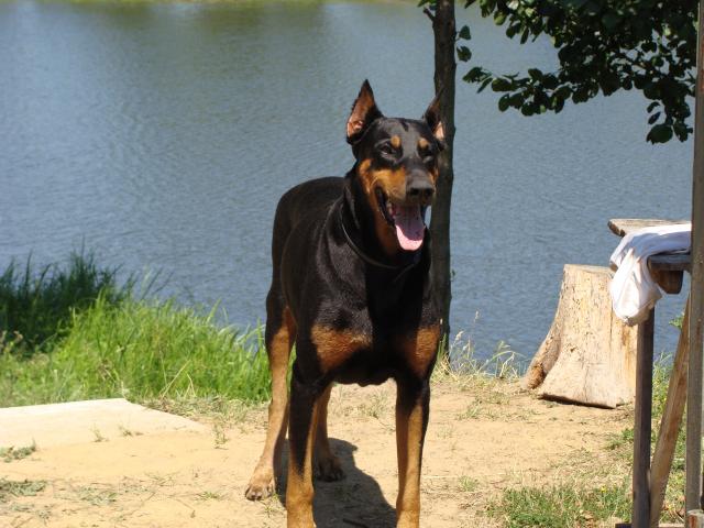 А почему вы не сфотографировали собачку в профиль так, чтобы была видна вся грудь и лапы? Это же великолепное зрелище - глубокая грудь и поджарый живот. У меня тоже была доберманша, из клуба. Морда такая же. Только одно купированное ухо сначала стояло, а потом - упало, хоть и склеивали пластырем. Видите ли, в Севастополе мода была купировать уши так, что бы они оставались подлиннее. У вашего Рейна ушки явно покороче. Замечательная порода! Держали в квартире. Чтоб выпустить "пар", делали так - муж сидел на велосипеде, в руках держал поводок, а она пёрла со всей мочи, аж язык сбоку вываливала. Любимая, жаль,что её уже нет!