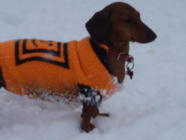Мне запомнился веский аргумент моего сына, который никогда не любил долго гулять с Кингом (тогда Кинг был еще один). Зима выдалась суровая и сын прогулял только минут 40. Когда я стала его укорять, то он мне ответил:"Мам, что ты хочешь, на улице такой мороз, что даже овчарок в пальто одели, а Кинг ведь раздетый". Овчарка в пальто - это, конечно же, нонсенс. А маленький той - в порядке вещей.
