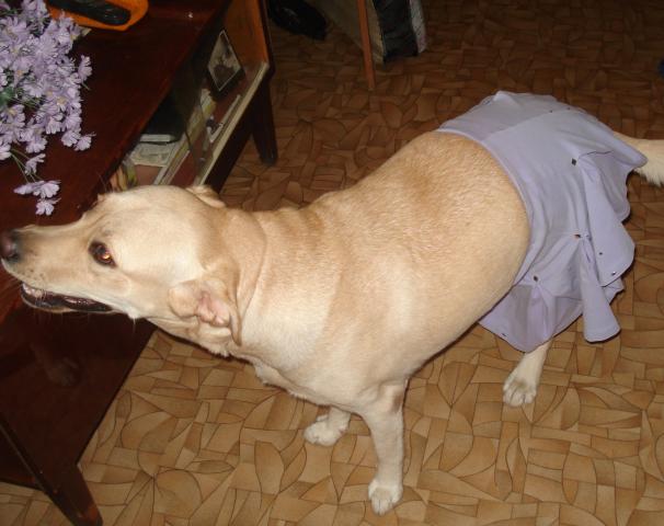 Мы очень часто наряжаем нашу Легру, девочка все-таки. Еще и аппетитная вся такая, крутиться перед нами, ну а мы всей семьей от души смеемся. Конечно все это ненадолго, но сфотографироваться успеваем. Недавно попытались одеть нашу красавицу арабской танцовщицей, но ей бы сразу улечься и попозировать, снимать ничего не стала, но и вставать в наряде тоже не хотела. А так мы и парики на нее одевали, и юбочки, а сынуля мой вообще умудрился одеть на собаку огромное бабулино платье. Представляете зрелище: навстречу по коридору идет собака, окутанная оборками ярко-розового платья... Жаль в тот момент фотоаппарата под рукой не оказалось.
