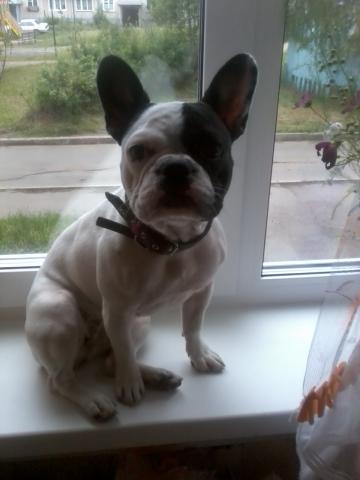 В детстве все французики имеют непропорциональное телосложение - большая голова и уши, тоненькие ножки. Голова была тяжелее... Очень смешно было наблюдать, как он пьёт или ест из миски. Если он опускал голову - тут же поднимались задние ноги, и неизбежно мордочка оказывалась полностью в миске с водой или кормом. За этой картиной можно было наблюдать бесконечно. Без нашей помощи тут было не обойтись. И каждый раз, когда он хотел поесть или попить - кто-нибудь из домашних держал ему задние лапы.