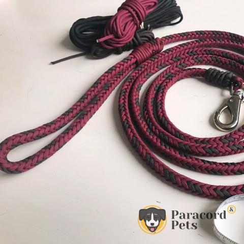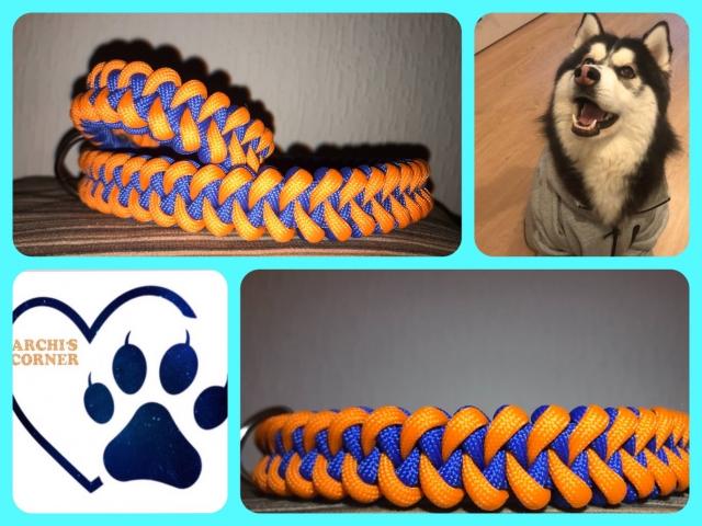 Здравствуйте!) Мы плетём ошейники, поводки и шлейки из паракорда своими руками. Паракорд - это тонкий нейлоновый шнур, очень прочный, бывает разных цветов и размеров. Не поддается гниению и плесени, хорошо держит цвет, можно стирать в машинке.