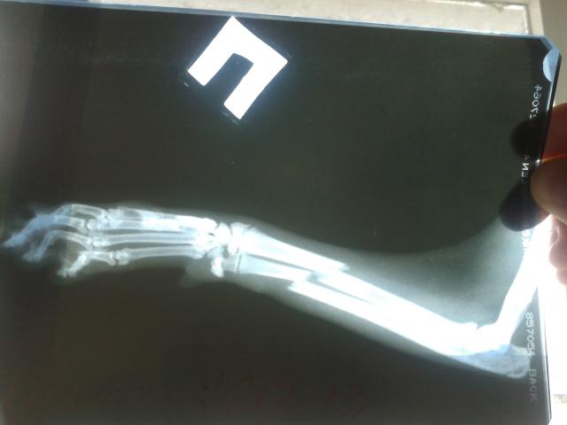 Здравствуйте! Помогите, пожалуйста, разобраться. 26 июня моя кошечка выпала из окна 8 этажа на бетонную крышу подъезда. Сделали узи ОБП и рентген передней правой лапки. На узи все в порядке, а вот с лапой проблема. Оказалось что у нее перелом со смещением. 28 июня сделали операцию, поставили спицы. 4 июля я сделала контрольный снимок и не поняла… Это так и должны быть кости или нам плохо сделали операцию? Добавляю снимки рентгена и лапы кошки после операции.