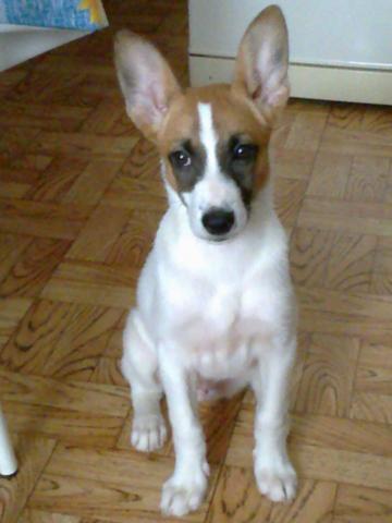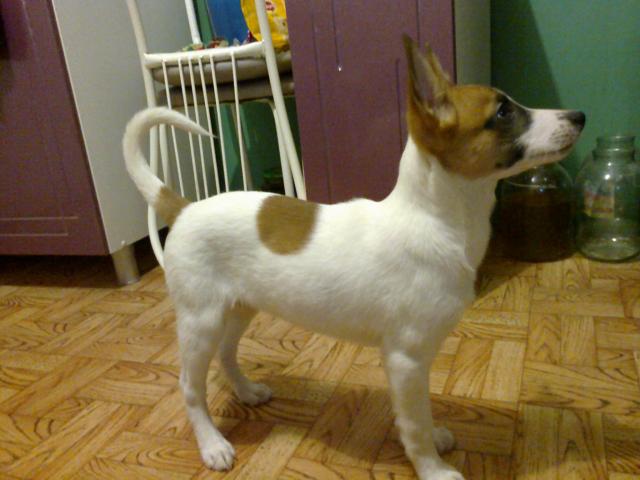 Хорошенький малыш, но скорее всего метис. По окрасу напоминает Джек-рассел-терьера, как в фильме "Маска", только ушки стоят и хвостик некупирован! В любом случае видно, что щенок живой и любознательный, а значит принесет вам много радости от общения!