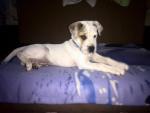 На стаффорда щенок мало похож, скорей он мне дога напоминает. Есть в нем что-то от молосса. Вот щенки стаффа и дога для сравнения. Хотя у дога уши на порядок больше, но морда похожа.