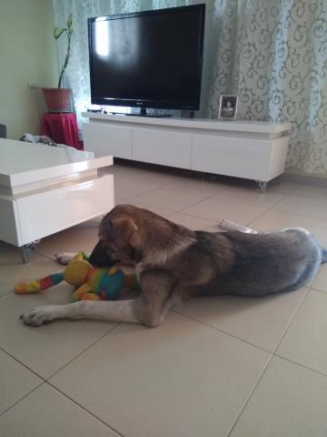 Немного есть , последнее время пока нас не было дома разодрал 2 коврика на кухне , на улице иногда зову к себе а он бегает кругами играется , приходиться сажать на поводок и закреплять послушание .