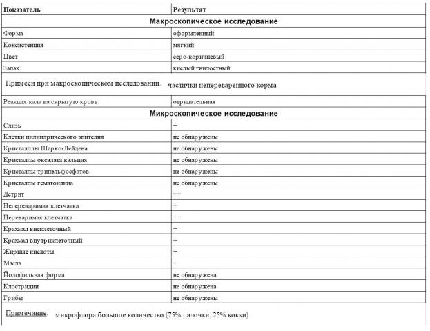 По результатам очного приема была обнаружена небольшая болезненность при пальпации живота, а также в давних анализах кала(более 3мес.назад) проблема с перевариваемостью. Был сделан рентген, врач выявила проблемы в кишечнике (воспаление). Назначены желчегонные ср-ва: 1/4 хофитол + 1/4 но-шпа, настой кукурузных рылец 2,5мл, энтеросгель 1мл+1мл воды; все 2раза в день до еды. Через 3-5 дней после начала приема препаратов повторный анализ кала на микроскопию и ПЦР на паразитов.
