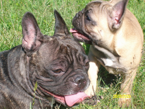 Каждый год куда бы мы не ехали Джерси везде была с нами. Когда Джерси было три года у нас появились щенки. Щенки Джерси дались очень тяжело, это была ее вторая операция и как результат из шести щенков выжили четверо один из которых был волчок Гера самый жизнелюбивый щенок. Меня до сих пор мучает совесть что в первые дни жизни я ему хоть и помогла выжить, но могла бы больше для него сделать: кормить его могла почаще и не отдавать в месячном возрасте из-за того, что он требовал большего для себя внимания, а дать подрасти ему побольше. Но, несмотря на все трудности и благодаря любви людей Гера вырос и стал красивым и крепким бульдогом. Тигровая девочка которую я назвала Памелла, родилась благодаря операции и тоже нашла СВОИХ хозяев, была толстенькой как пирожок, прожила совсем не долгую жизнь, возможно из-за своего сложного появления на свет, примерно в возрасте трех лет она погибла от болезни связанной с позвоночником. Первые же щенки Партос и Прима родились самостоятельно, они были очень жизнелюбивые и интеллигентные как и их мама, когда мы гуляли во дворе их просто все обожали, да и как было не влюбиться в этих пухляков. Партос был воплощением настоящего мужчины, он требовал к себе внимания, именно требовал, кричал (не скулил не визжал а кричал) когда ему ставили прививку или не брали к себе на диван. Меня всегда интересовал вопрос: почему им всем необходимо было сидеть на диване, почему когда их посадишь на диван наступала тишина и покой? Партос нашел своих хозяев, но к сожалению связь с ними потеряли мы. А Прима прожила с нами около полугода, все никак не решался вопрос по ее хозяевам, а все потому что, и собаки и люди они ищут друг друга и находят и я надеюсь что редко ошибаются друг в друге. Прима сделала благодаря своей хозяйке просто головокружительную карьеру, она обладала отличными природными данными, а хозяйка увлеченностью и настойчивостью.