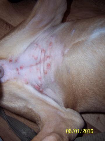 Прыщики у щенка стафорда