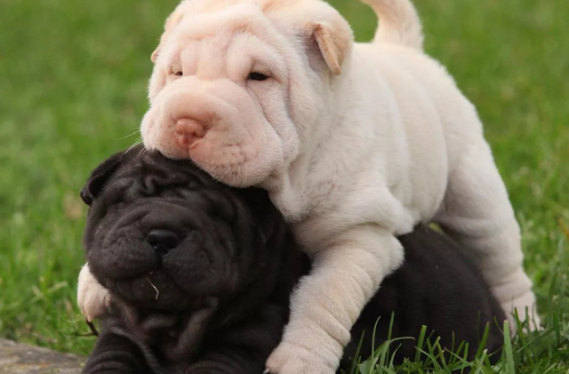 У щенка шарпея более выраженные складки и его ни с кем не перепутать.