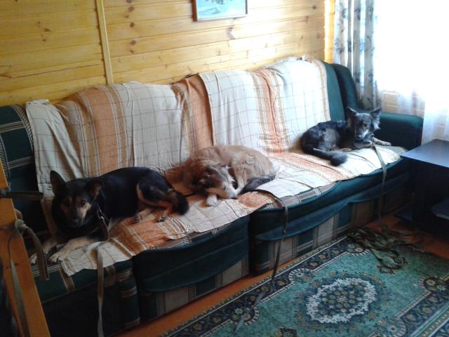 Мы с женой очень любим собак. Сейчас с нами живут трое- две девочки и парень. Парня Филю взяли в добрые руки после того, как умерла наша Шери.