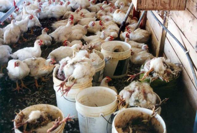 Каждый год десятки миллиардов животных убивают для последующего употребления их в пищу. Куры, свиньи, коровы проводят свою короткую жизнь в темных, тесных и грязных помещениях. Во многих случаях из-за тесноты им даже невозможно повернуться. Они живут в собственных испражнениях, дышат аммиачным воздухом. В таких условиях животные часто болеют, поэтому им постоянно колют антибиотики.